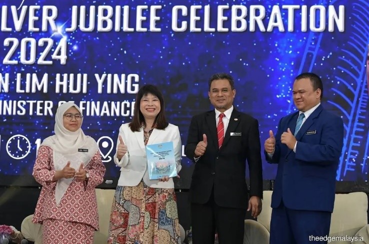 From left: INSPEN director Aina Edayu Ahmad, Deputy Finance Minister Lim Hui Ying, Ministry of Finance director general of valuation & property services Abdul Razak Yusak, and Napic director Norhisham Shafie at the launch of Napic’s Property Market Report for 1H2024 and the officiation of Napic’s NAPIC Silver Jubilee celebration, as well as the International Real Estate Research Symposium 2024 (IRERS 2024) in Kajang on Monday. (Photo by Suhaimi Yusuf/The Edge)