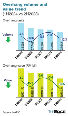 Napic also said that the number of completed but unsold residential properties fell to 22,642 units, worth RM14.24 billion in 1H2024, continuing the decline from 25,816 units worth RM17.68 billion in 2H2023.