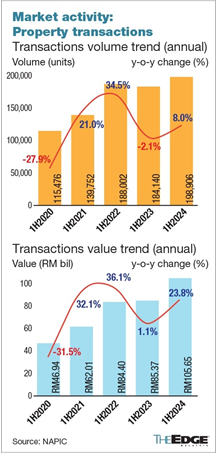 KAJANG (Sept 9): Malaysia’s property transaction value soared to RM105.65 billion in the first half of 2024 (1H2024), marking a 23.8% year-on-year (y-o-y) increase — the highest in five years — according to the National Property Information Centre (Napic).