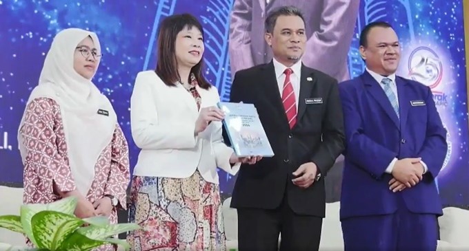 LIM HUI YING menerima cenderamata daripada Abdul Razak Yusak selepas pelancaran Laporan Pasaran Harta Tanah Separuh Pertama 2024 di Inspen